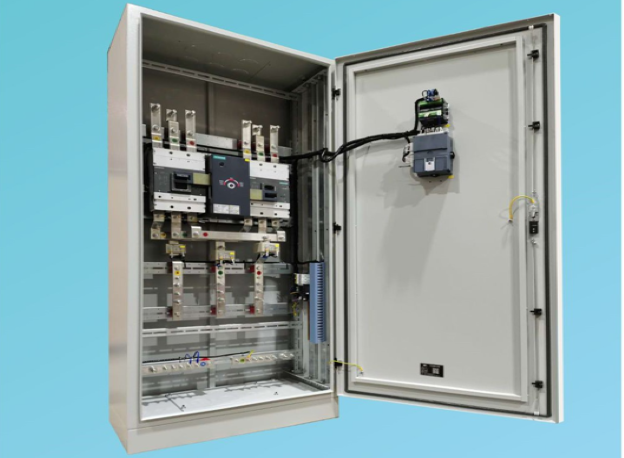 - 双电源具有可靠的电气及机械连锁,其控制器一般放置在柜门上,便于监控与操作。其方案有多种形式,一般为在双电源前端配置隔离开关(或断路器),以保证设备检修方便。